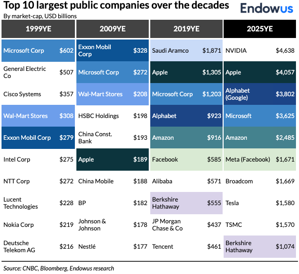 History proves that the world’s largest companies are unlikely to remain the largest. Even very well-known, big companies can be replaced within their industry by newcomers and disruptors.