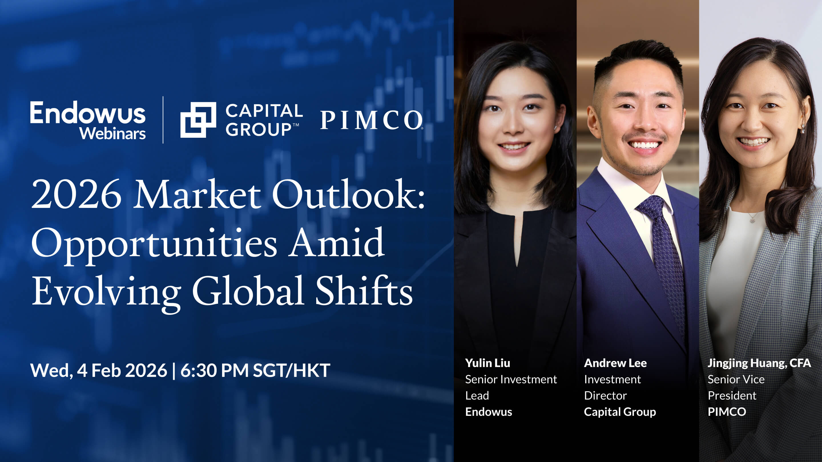 ‍Endowus warmly invites you to our live webinar, 2026 Market Outlook: Opportunities Amid Evolving Global Shifts. Endowus’ Senior Investment Lead, Yulin Liu will host a panel of investment experts: Andrew Lee, Investment Director, Capital Group and Jingjing Huang, CFA, Senior Vice President, PIMCO, to discuss global market trends and asset allocation strategies for the year ahead.