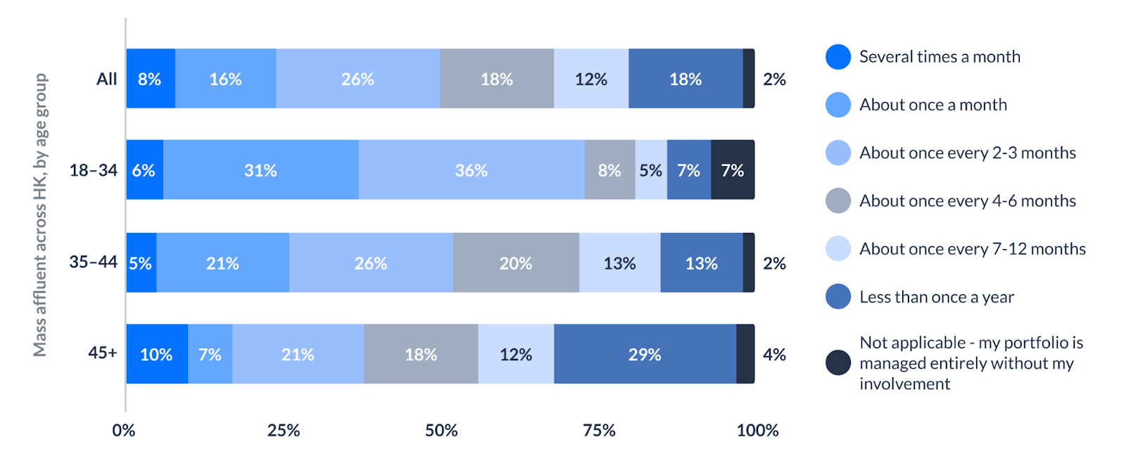 Q. How frequently do you make changes to your investment portfolio (excluding rebalancing, autobalancing, or other automated adjustments)? Please select the answer that best applies.