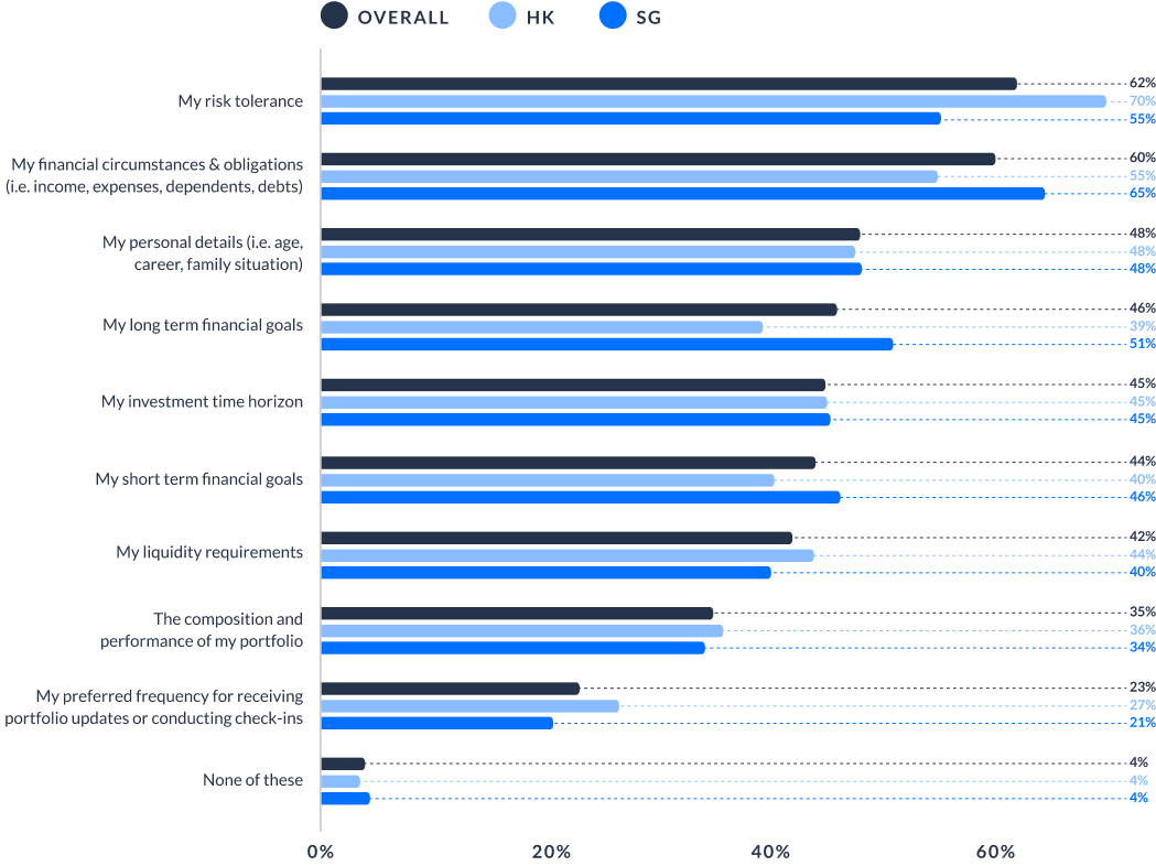 Q. Which of the following do you think your financial advisor/relationship manager has a clear understanding of, before giving you financial advice or product recommendations?