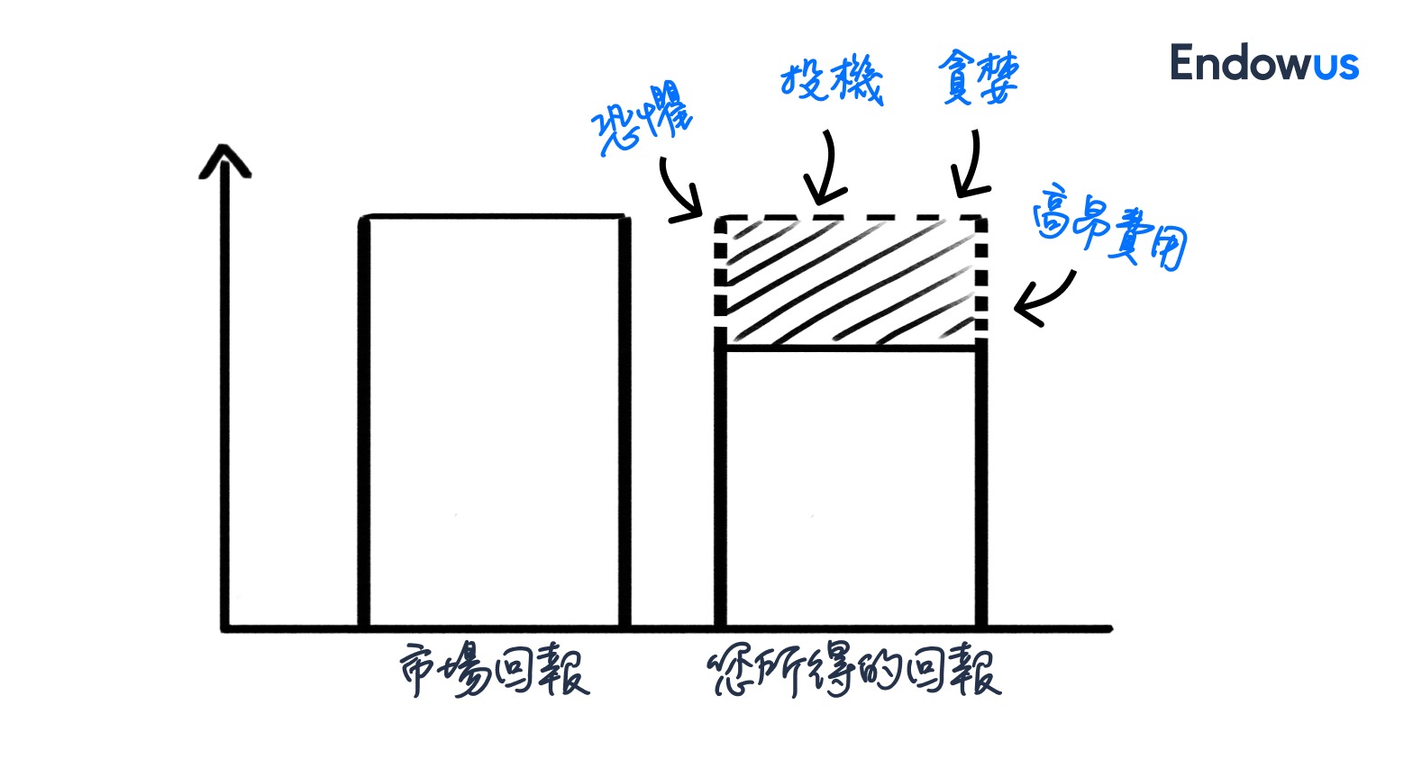 市場提供的回報是指數或基金的客觀表現,若完美持有本可帶來的回報;而投資者最終得到的,則是投資組合的實際增長。兩者之間的差距,正是財富流失的所在,主要來自行為成本與實際費用: