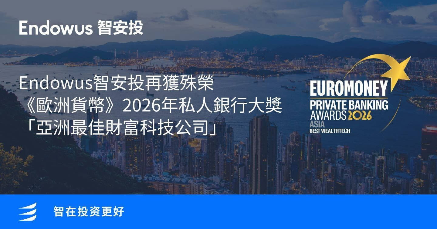 - 《歐洲貨幣》私人銀行大獎評選 Endowus 為「亞洲最佳財富科技公司」。這是該獎項首次設立專屬財富科技的獎項,亦是全球財富管理界最備受尊重的卓越標誌之一。這項殊榮肯定了平台以無利益衝突及以專業建議為本的理念,能夠與全球頂尖私人銀行及財富管理機構並駕齊驅,為每位投資者提供應有的專業服務水平